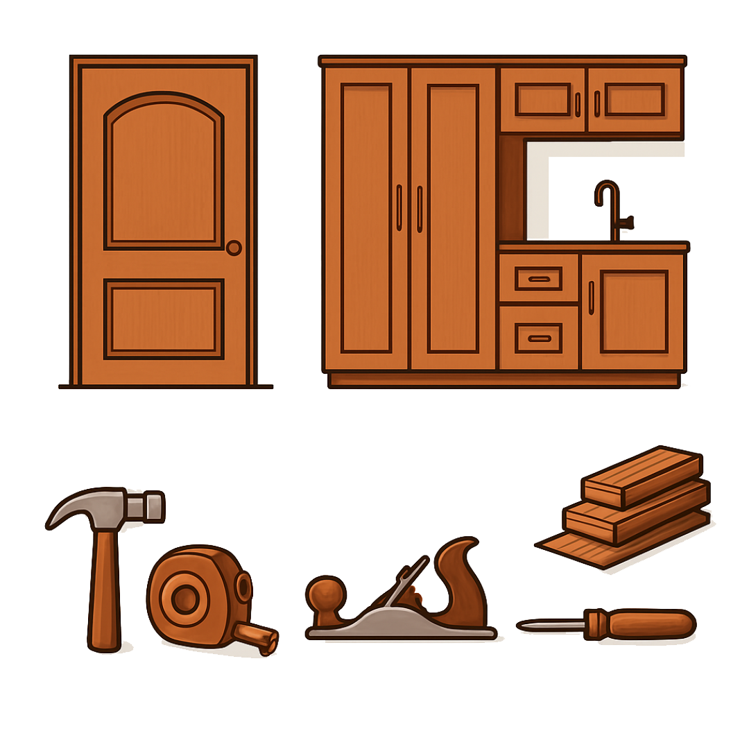 - Πόρτες, ντουλάπες, κουζίνες, ειδικές κατασκευές